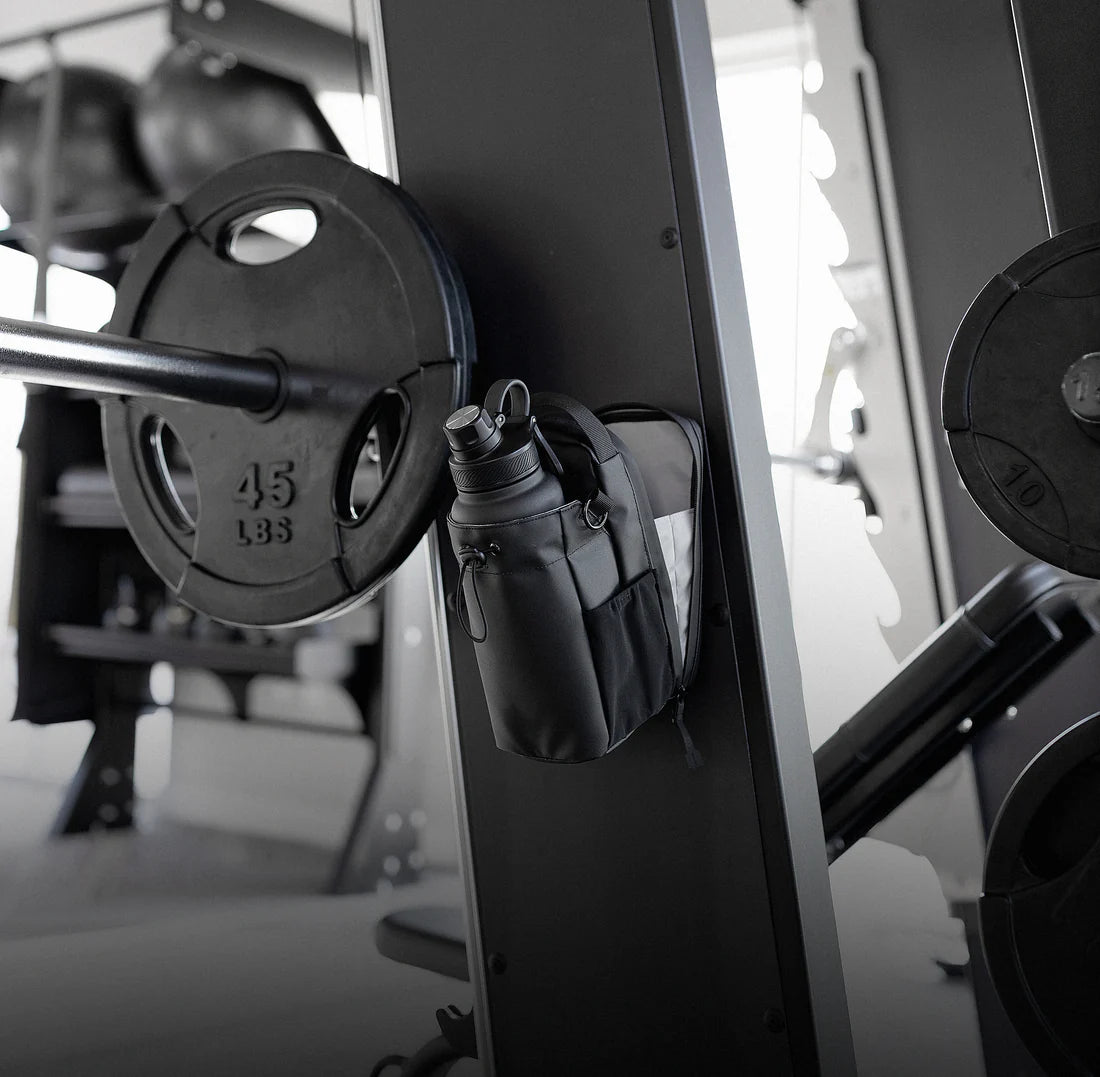 Le Gym Magnetic Bag s’aimante directement à ta machine pour garder ton téléphone, tes clés et tes accessoires toujours à portée de main.